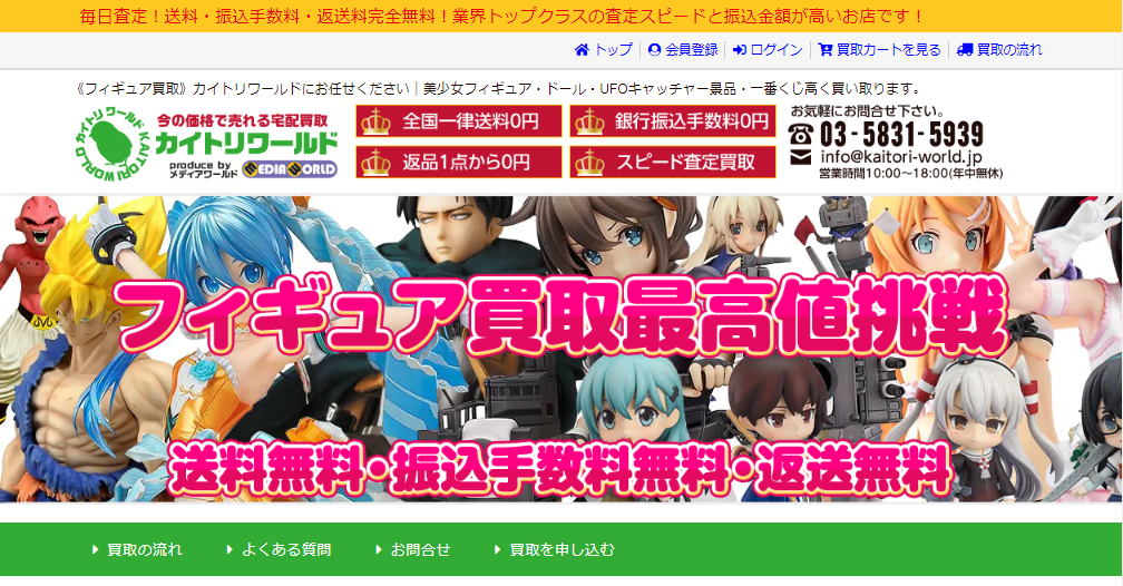 状態が悪くても、きちんと査定判断を行ってくれるため、こちらも大量にフィギュアを買い取ってもらいたい方におすすめのサービスです。