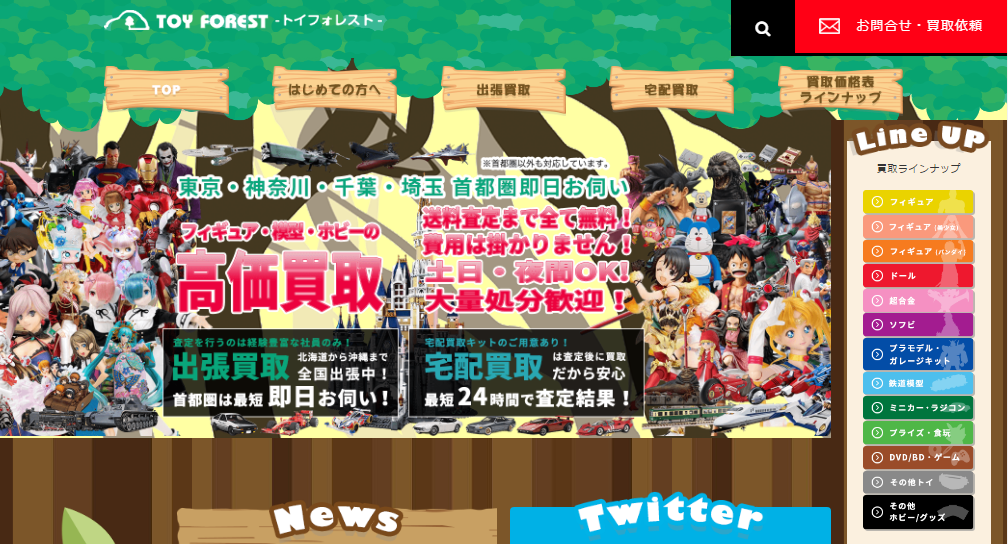 出張買取・宅配買取ともに24時間365日&全国対応で、買取サービス界で人気の高いトイフォレストです。