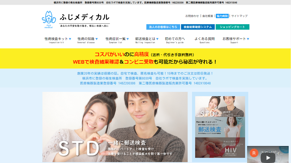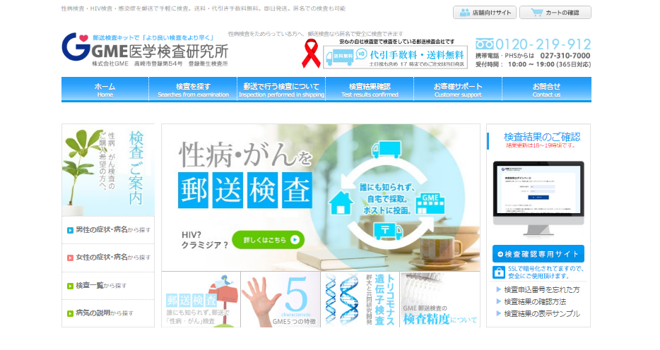 クラミジア・淋菌・HIV・梅毒など様々な性感染症、各種ガンの郵送検査会社です。365 日年中無休で商品を発送・検査を実施、臨床検査技師(国家資格)の常駐など充実のサービス体制で人気が高くおすすめです。